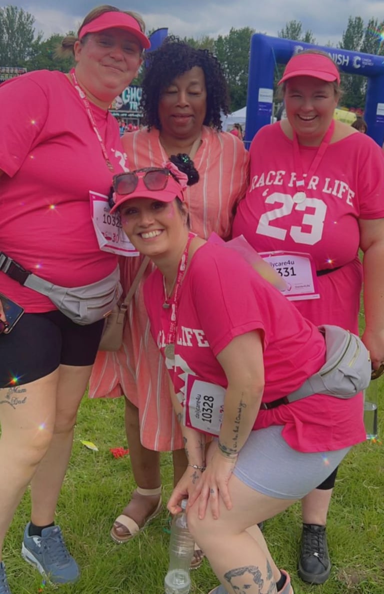 Staff members taking part in Race for Life at Telford Town Centre 28th May 2023, they raised £560!